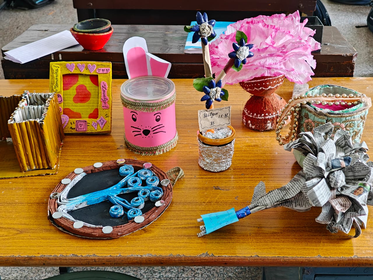 Using discarded and recyclable materials, the students crafted impressive items such as wall hangings, pen stands, photo frames, flowerpots, decorative pots, newspaper bags, and floral bouquets. Each creation reflected their imagination, aesthetic sense, and commitment to sustainability. The activity not only promoted the concept of reusing and recycling but also instilled in students the values of eco-consciousness and environmental responsibility. It proved to be an enriching learning experience, encouraging young minds to adopt sustainable practices in their daily lives.