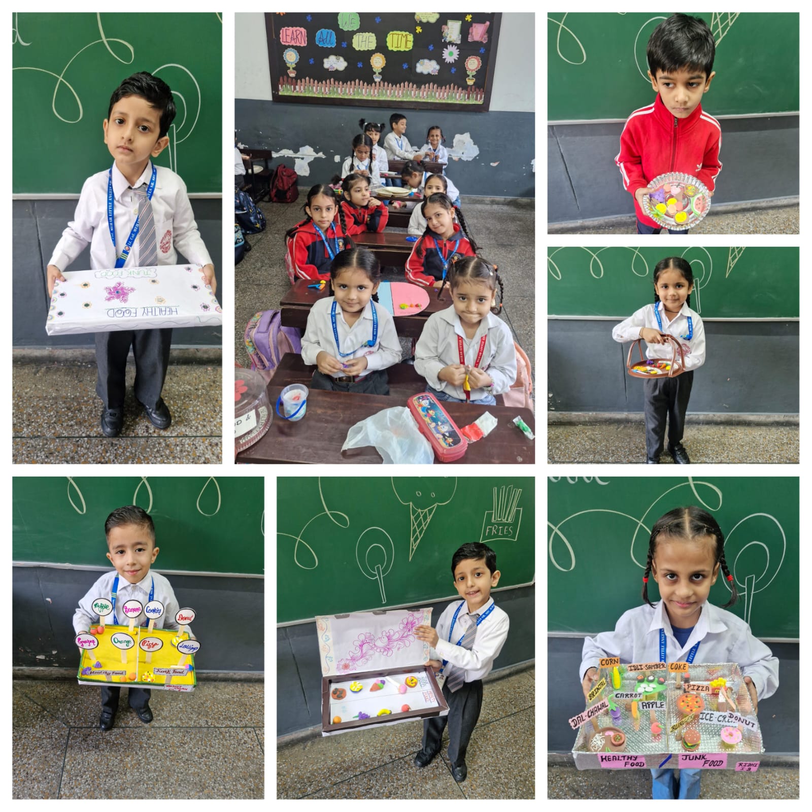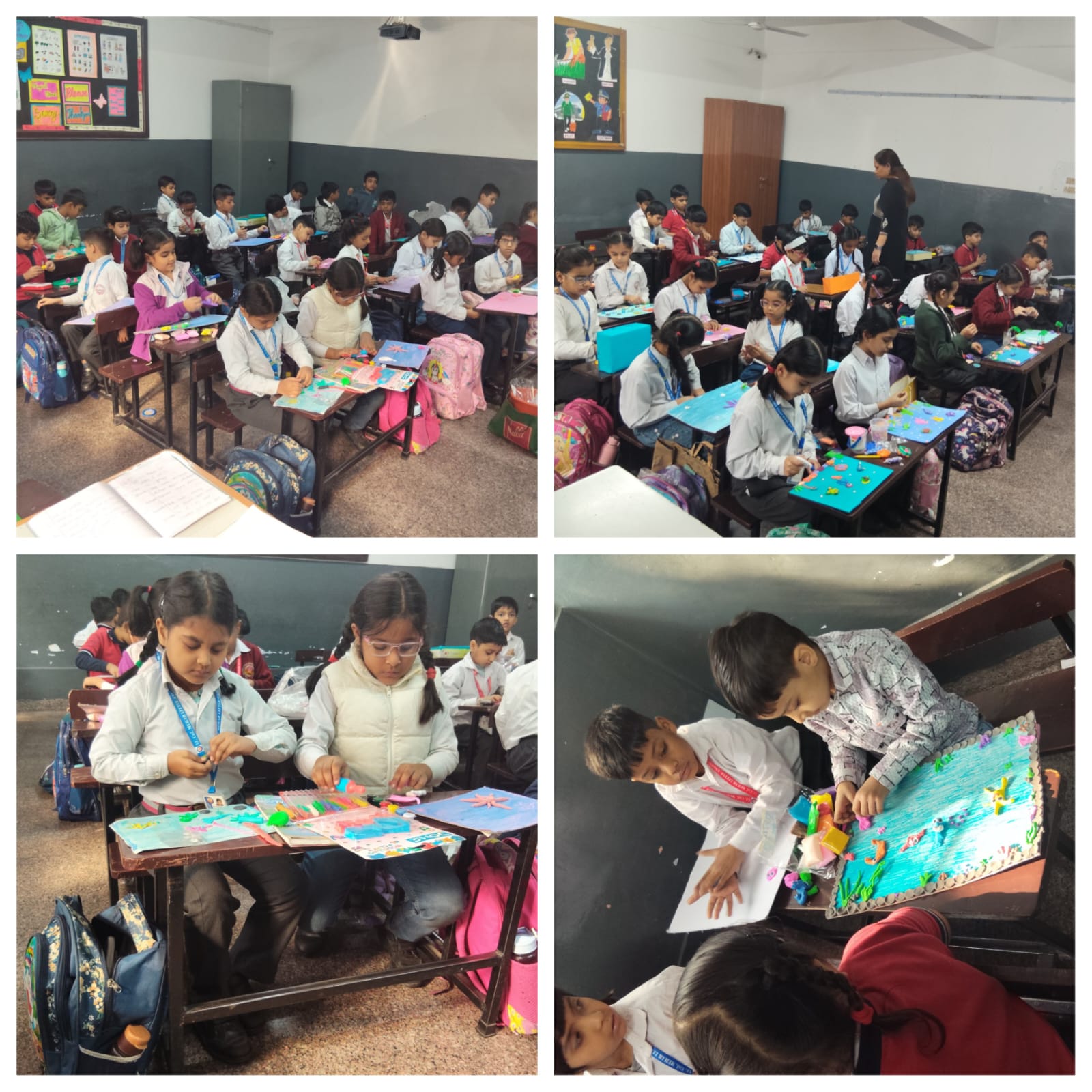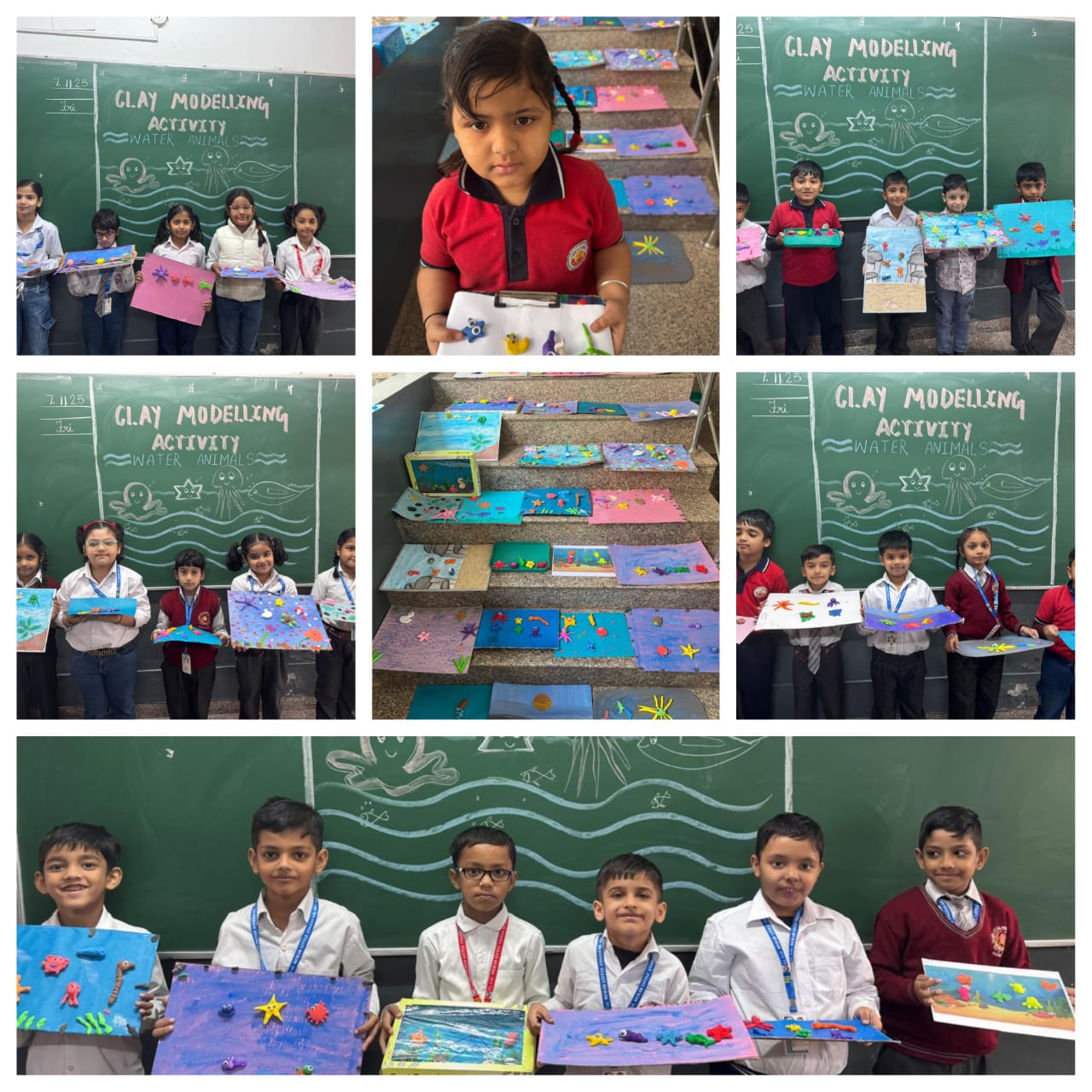 Students of Class I worked enthusiastically on the theme “Healthy and Junk Food”, moulding colourful clay into attractive models of various food items. Through their creations, they conveyed the importance of healthy eating in an engaging and enjoyable manner. Meanwhile, Class II students depicted the theme “Aquatic Animals”, skilfully shaping fascinating underwater creatures with vibrant details and enthusiasm.