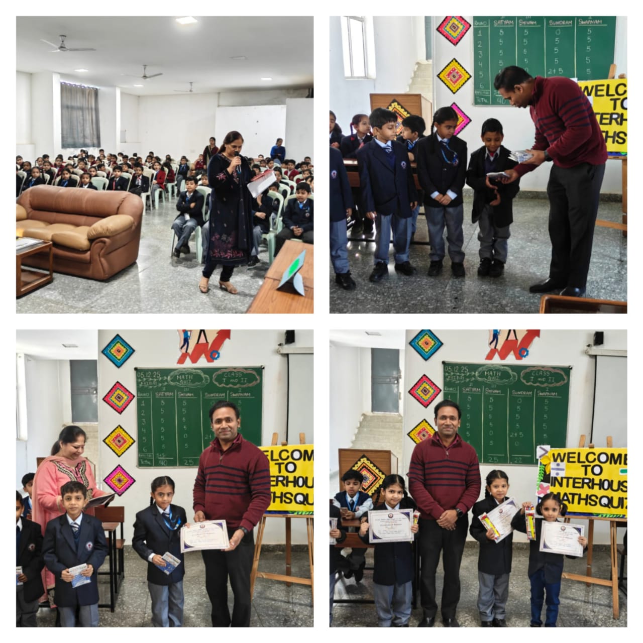 The school proudly hosted the Inter-House Mathematics Quiz for Classes VI to VIII on 29th November 2025, providing an exceptional platform for young learners to demonstrate their logical reasoning, analytical ability, and numerical proficiency. The event was conducted with the objective of fostering a spirit of healthy competition, promoting collaborative learning, and encouraging students to apply mathematical concepts with confidence and precision.
