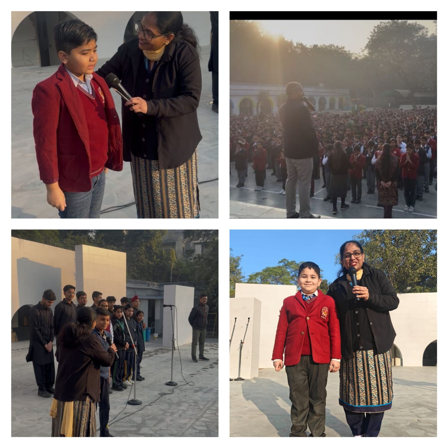 The event was held during the morning assembly and aimed to nurture patriotism, respect for national heritage, and awareness among students. The session was initiated by Ms. Kavita Chauhan, Social Science Teacher, who led the programme with great enthusiasm. She engaged the students in an interactive discussion, asking meaningful questions related to Vande Mataram, its historical background, and its role in India’s freedom struggle. Students actively participated and responded with confidence, reflecting their awareness and understanding. Ms. Chauhan also explained the importance and significance of Vande Mataram as a symbol of national unity, courage, and cultural pride.